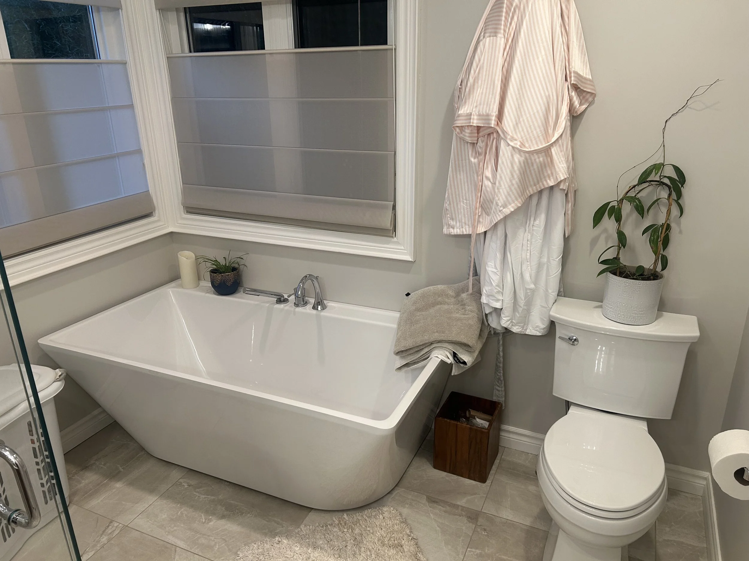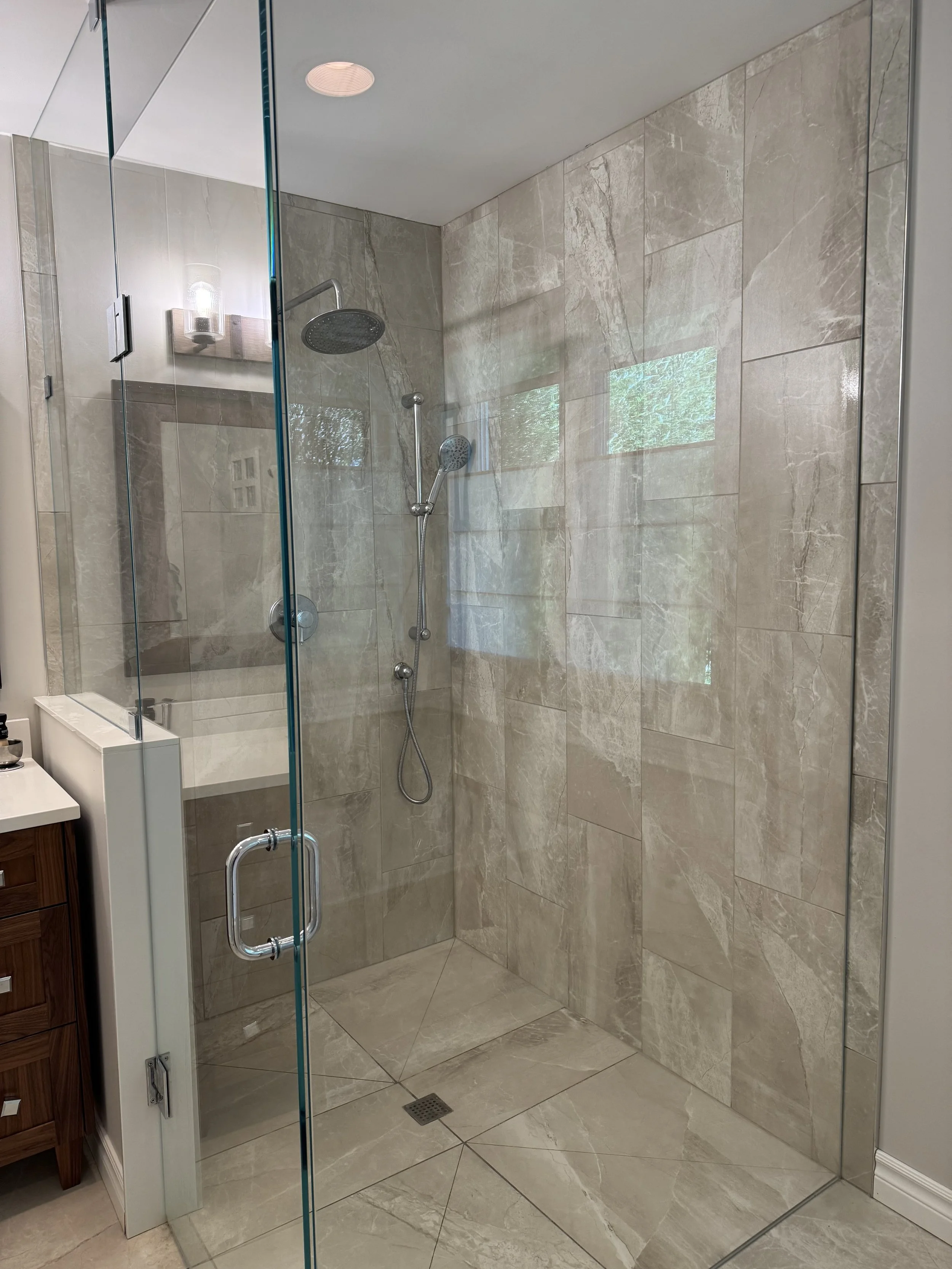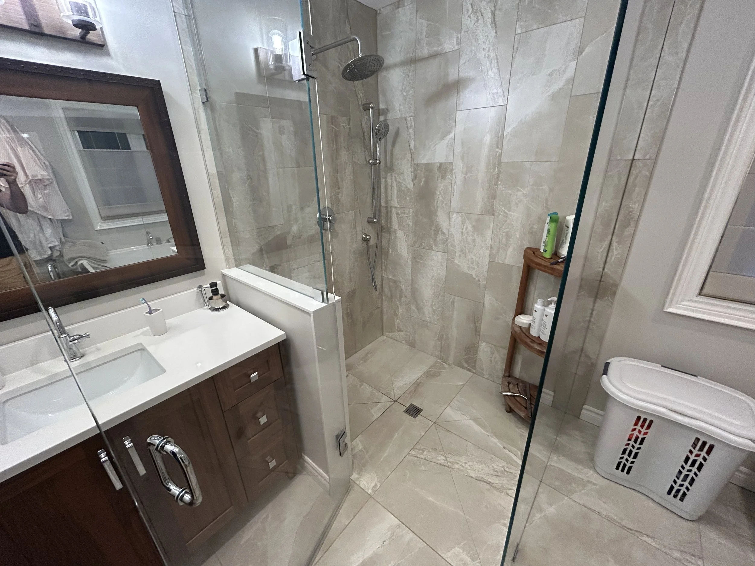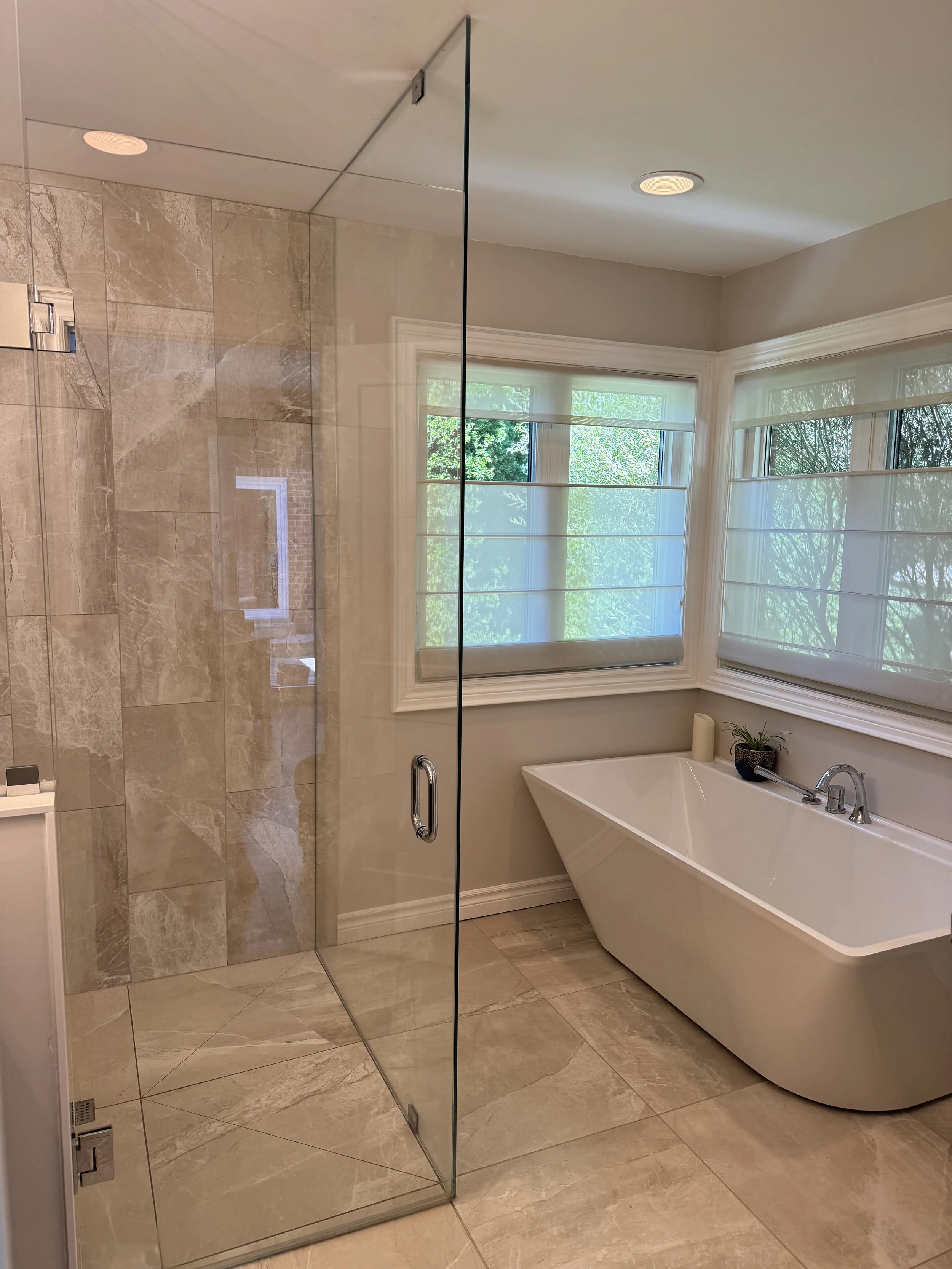New Ensuite bathroom with curbless walkin shower and soaker tub