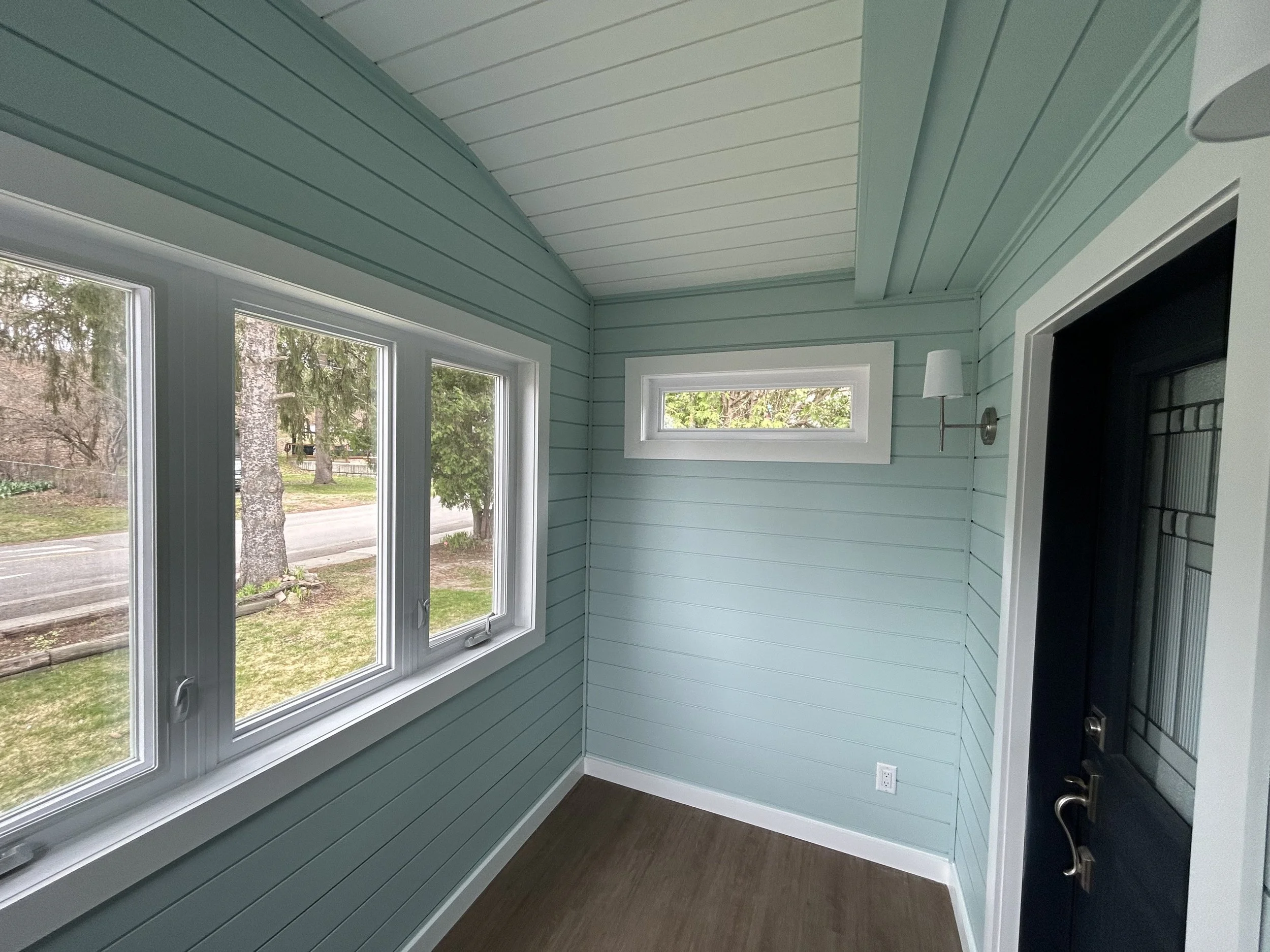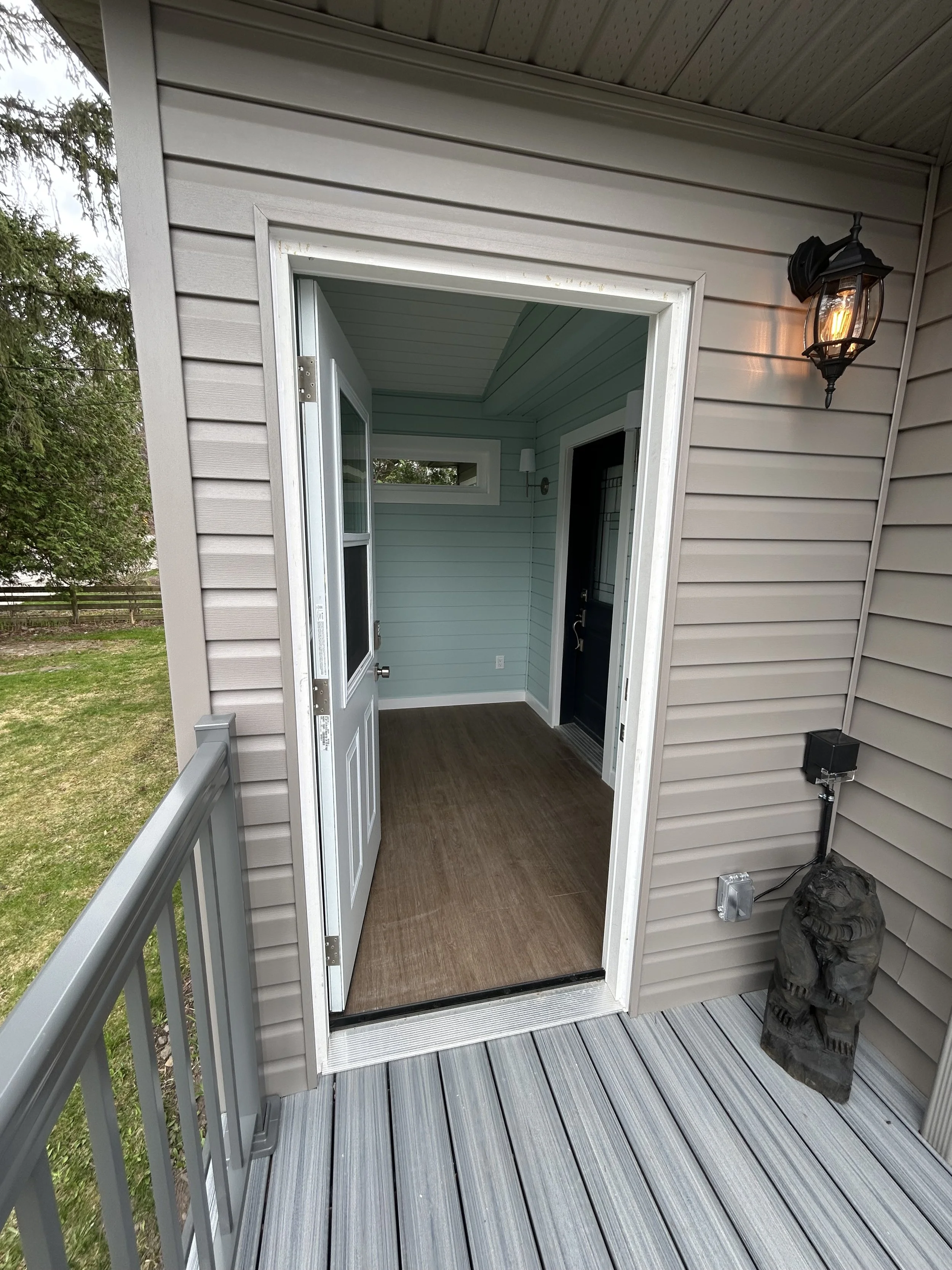 New Sunroom/mudroom addition and front porch.