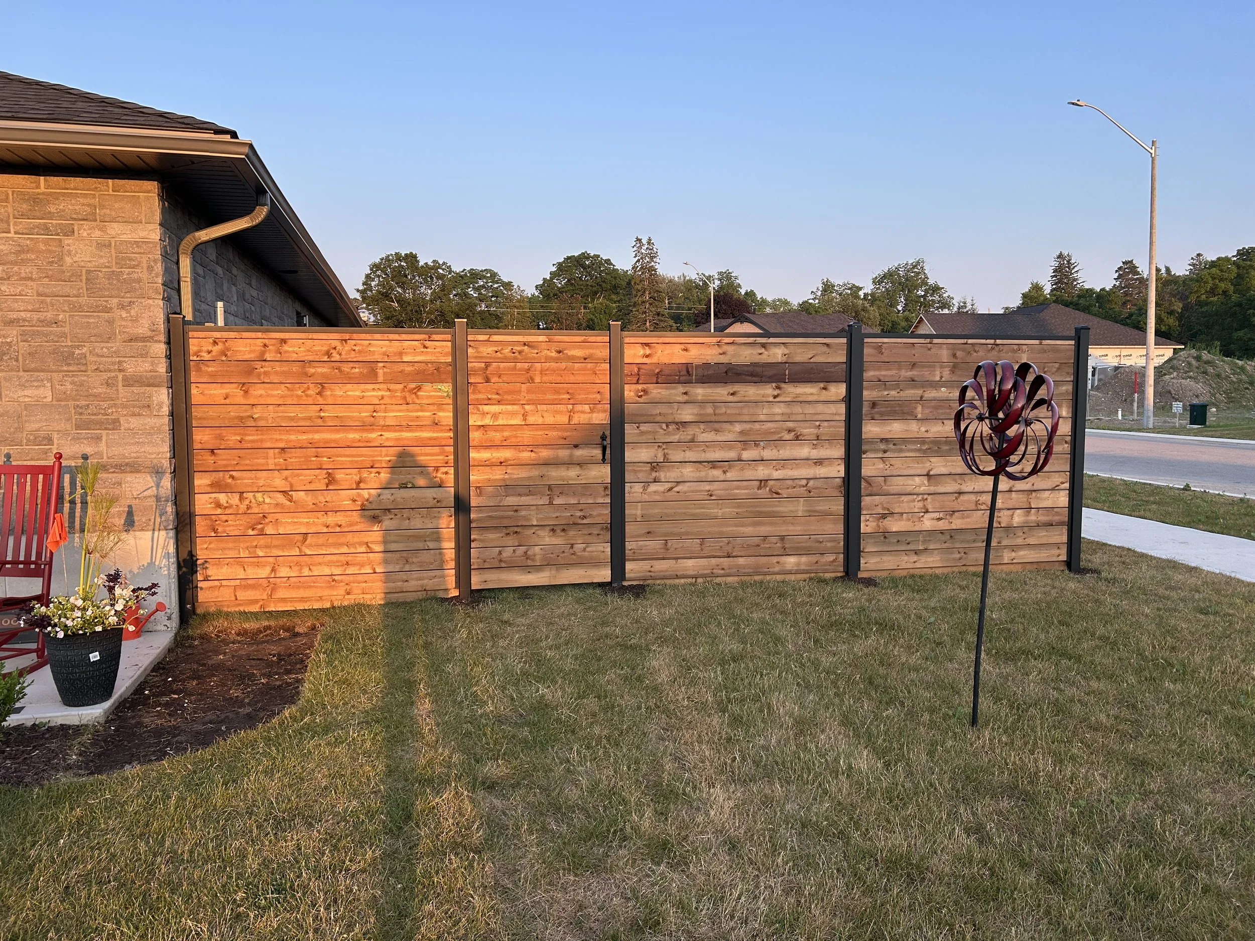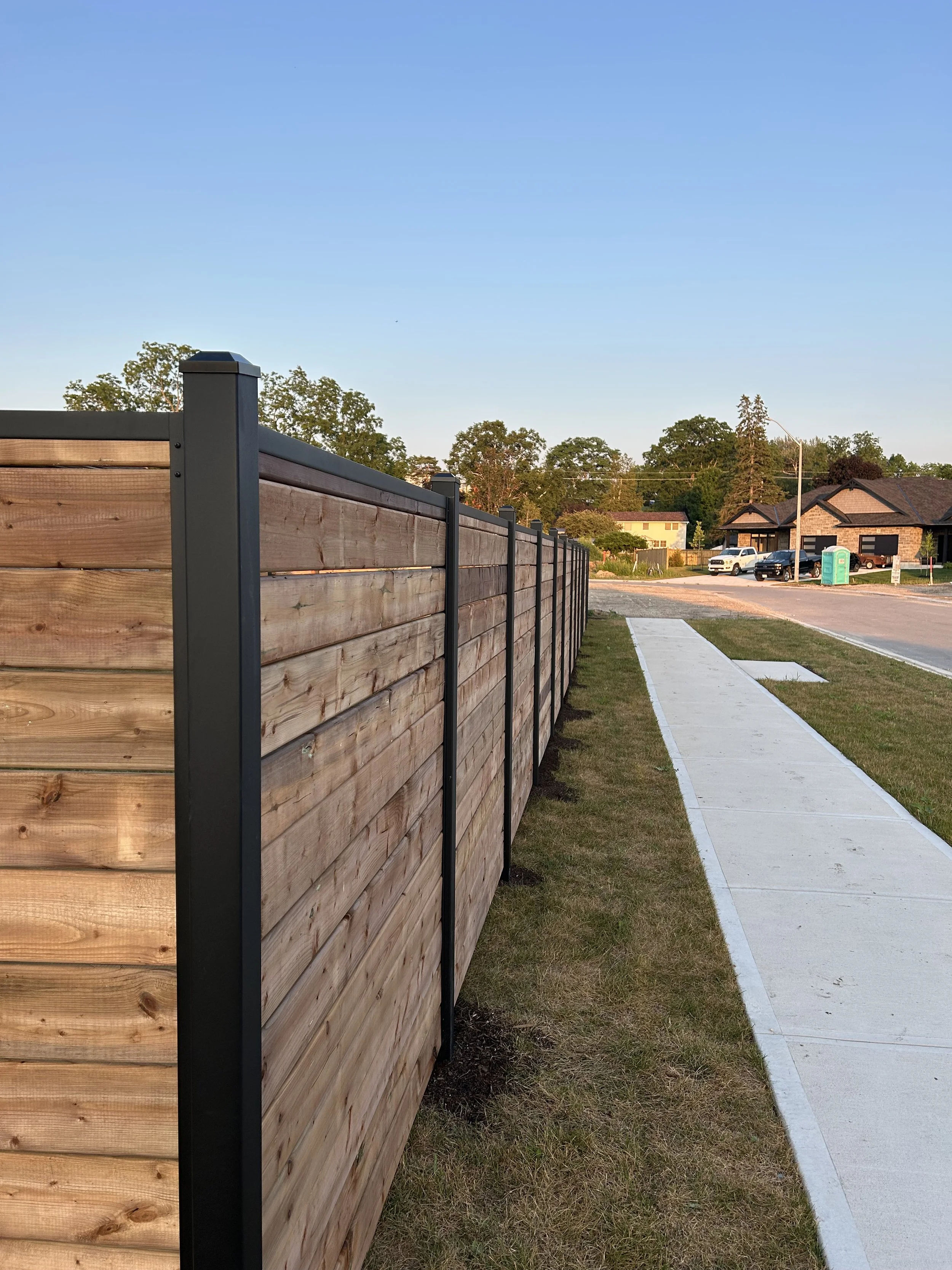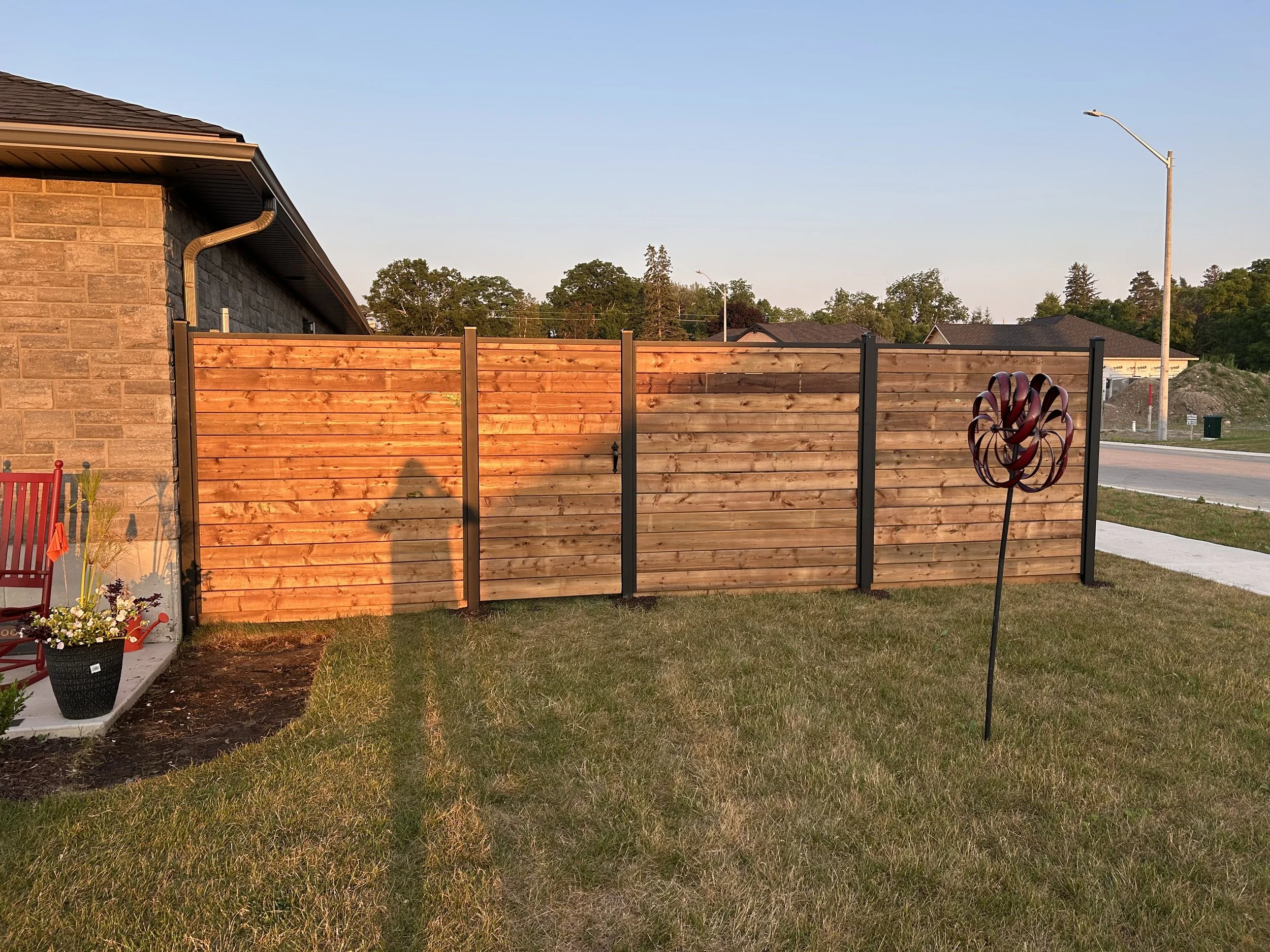 Custom horizontal Pressure treated Fence with aluminum posts and caps